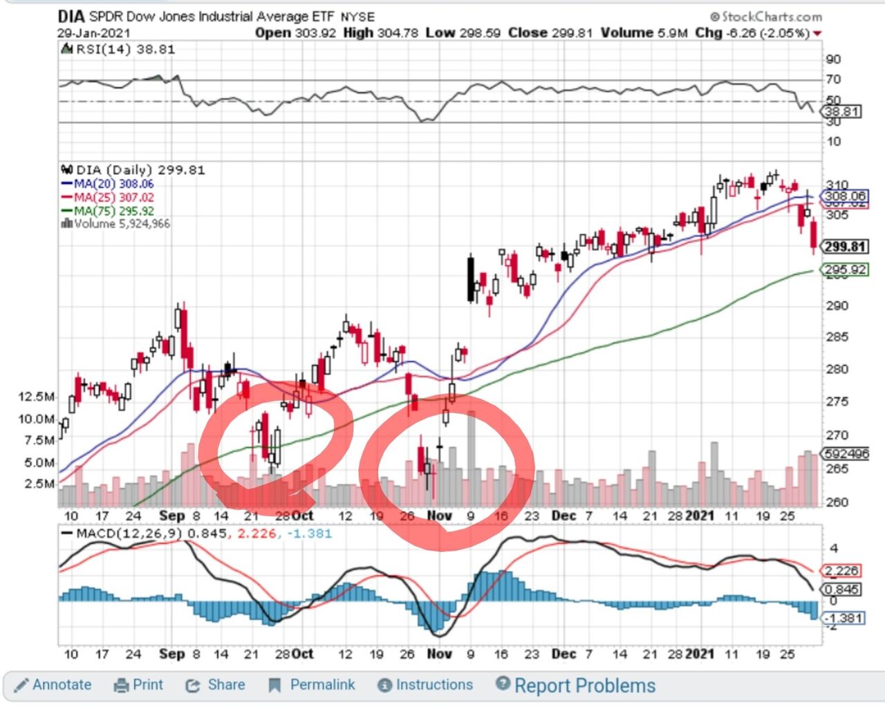 下記はダウ指数連動ETFのDIAのチャートです。(ダウと同じ動き)