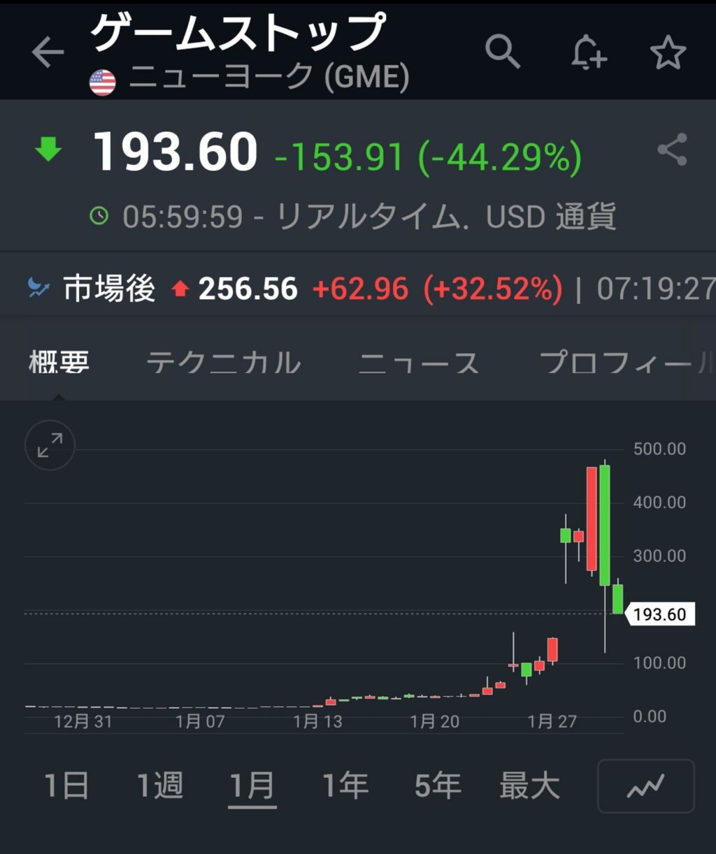 1/25にNYマーケットで場中 大きな動きがありました。(サイン点灯)