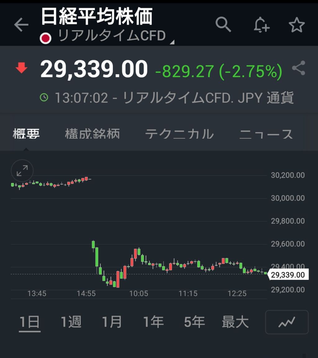 相場の下落について