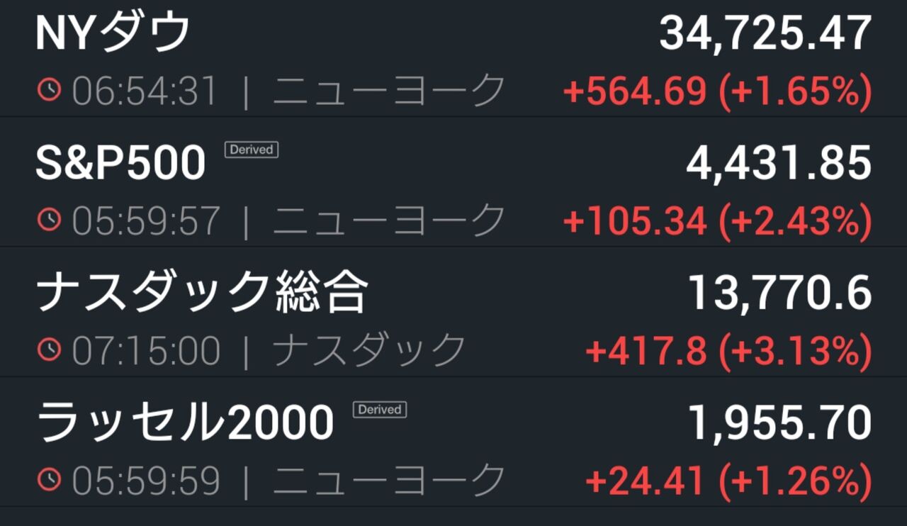 16212ポイントから 一番 下げたのナスダックじゃん~~