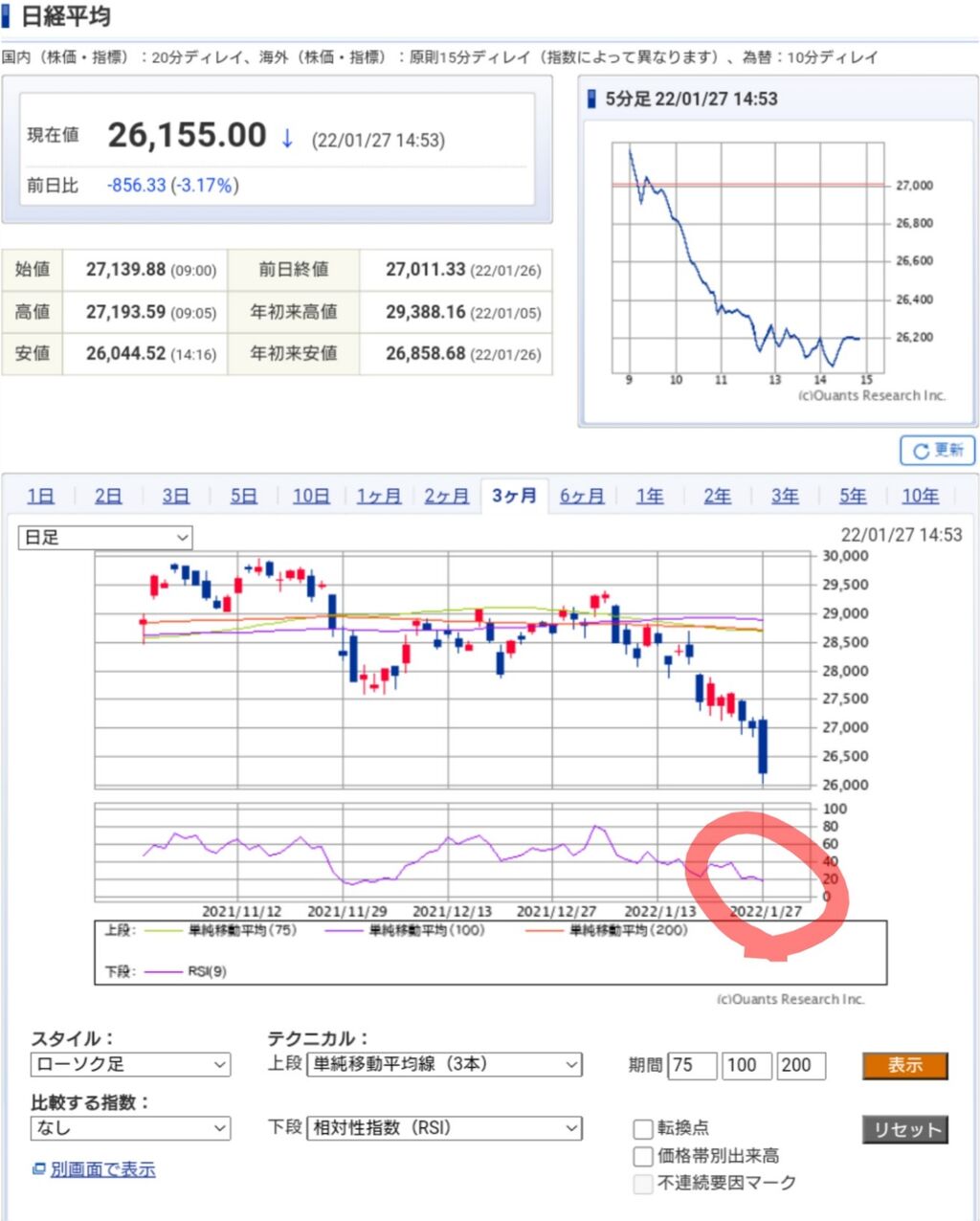 27190円台まで下落しています