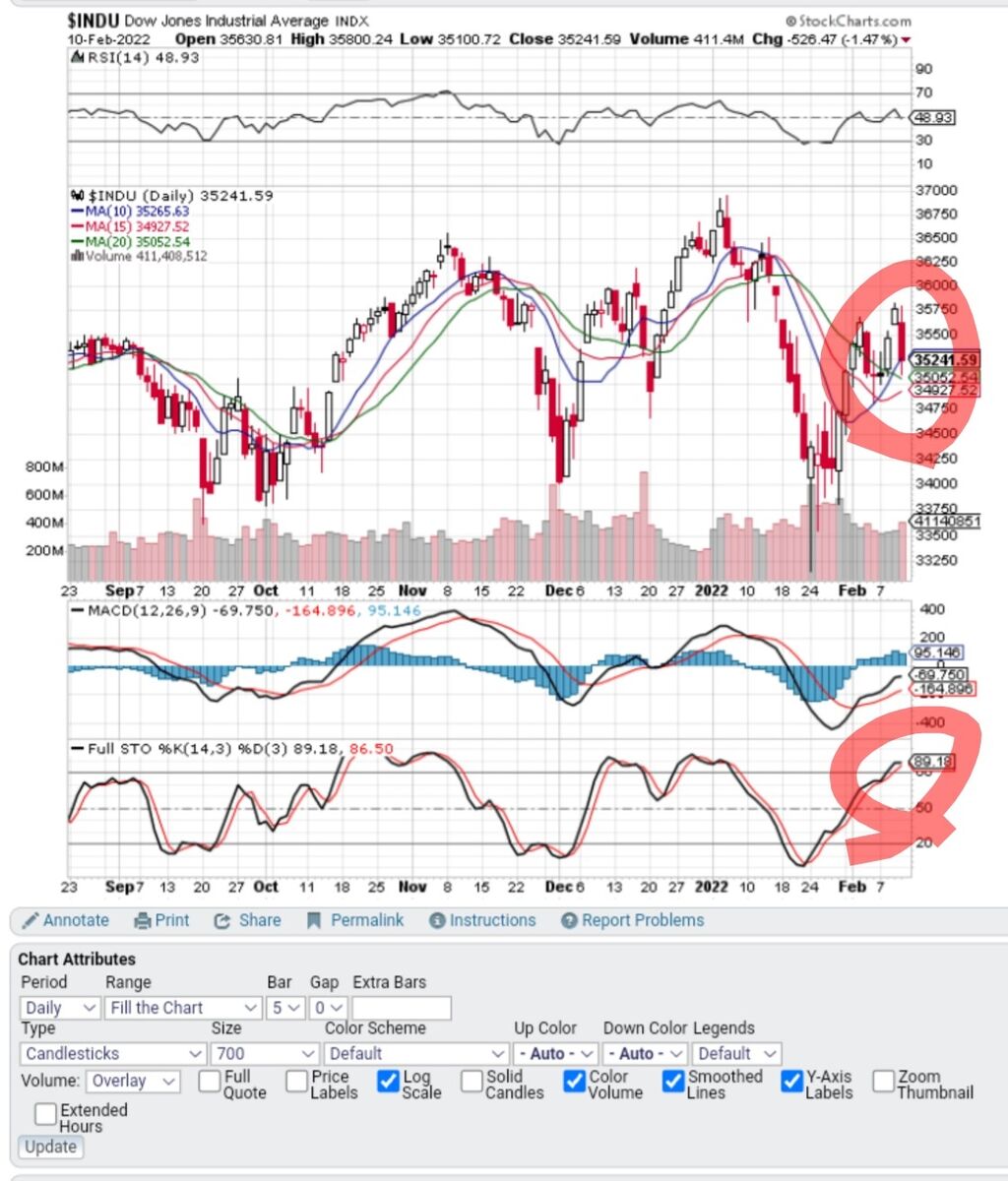 ダウ指数は 50日線の上に浮上していましたが