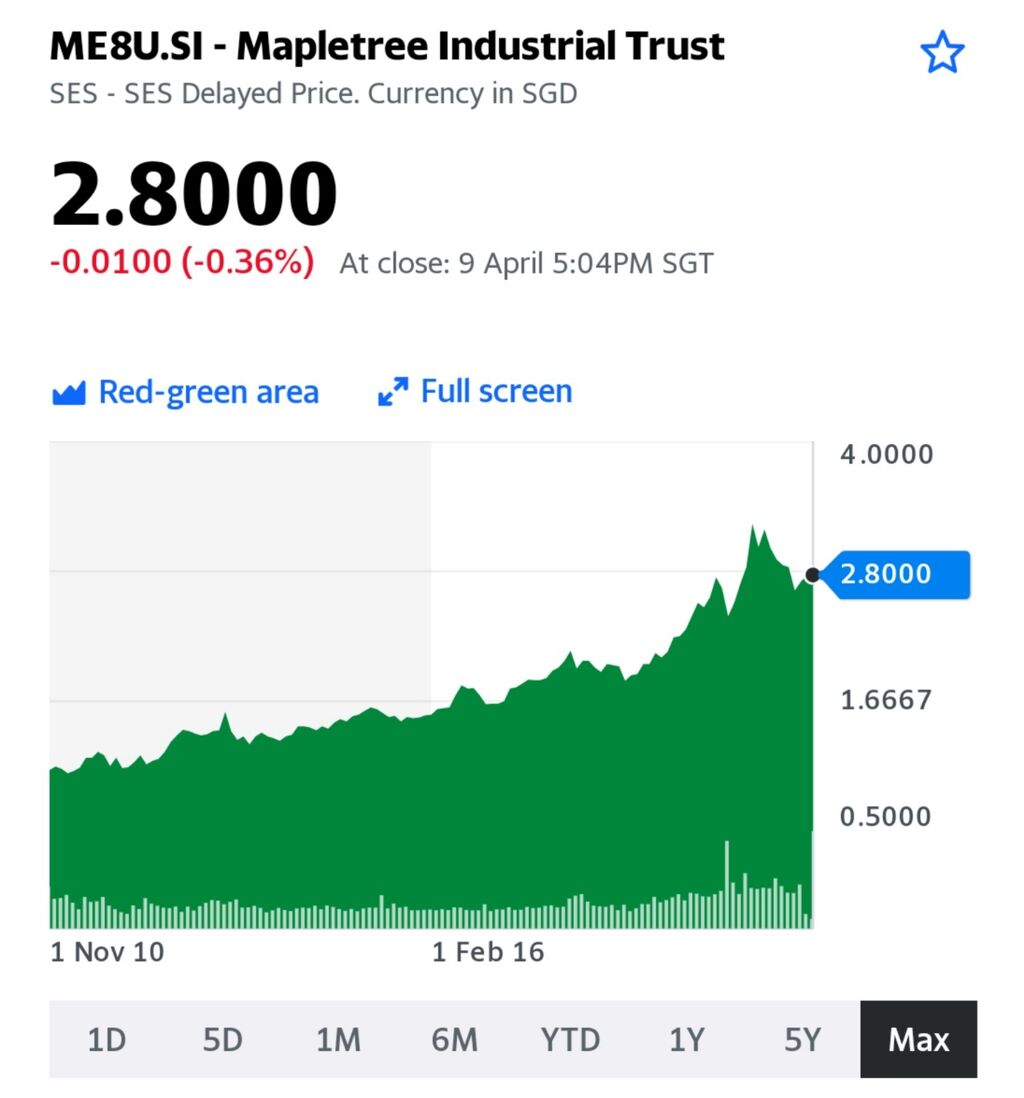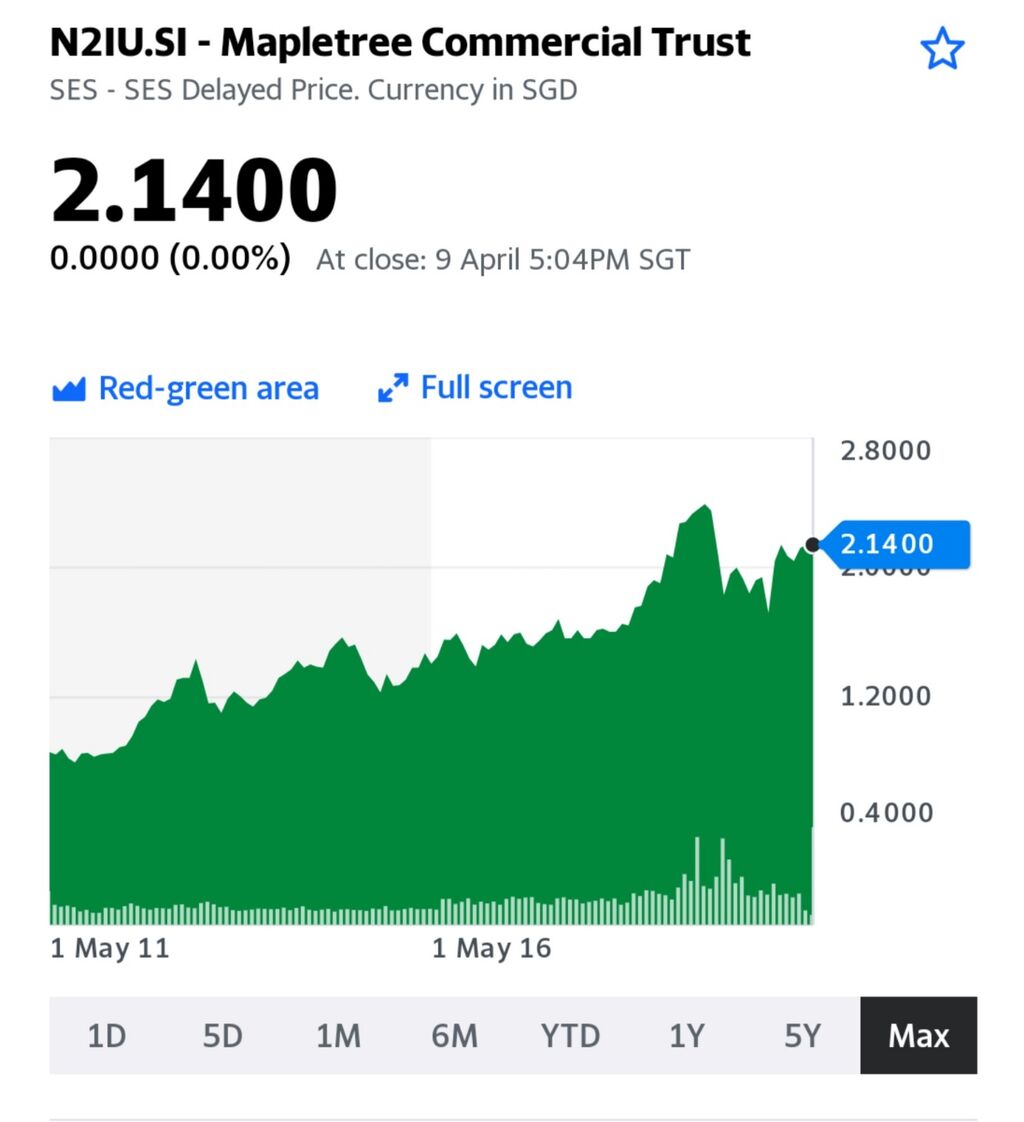 2010年から順次投資しているシンガポールリート個別の一部は あと4~5年で複利運用2倍化の予定